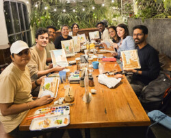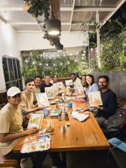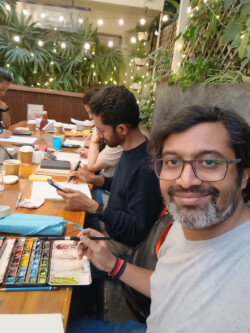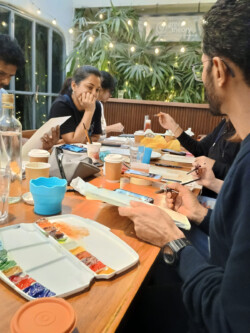 It was a wonderfully informal watercolour workshop held in a cosy coffee shop on Residency Road, Bangalore. For this session, we chose to paint a picturesque scene from Gdańsk, Poland. What made it even more special was having Aga, an artist from Poland, with us—painting a scene from her own country right here in Bangalore. She truly enjoyed the experience, and so did we.